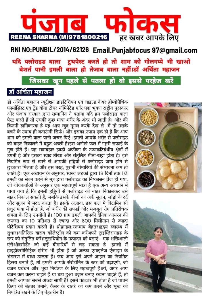 विशेषज्ञों (जैसे डॉ. अर्चिता महाजन) के अनुसार, अगर आपका क्षेत्र फ्लोराइड प्रभावित है और आपके नगर निगम का पानी उच्चतम स्तर का नहीं है, तो शाम को इमली या मीठा-पानी वाले गोलगप्पे (पानीपुरी) का सेवन लाभदायक हो सकता है। इसका कारण यह है कि इमली वाला पानी एवं फल/हर्ब्स युक्त मिश्रण बॉडी की अम्लता को तटस्थ करने और पाचन को बेहतर बनाने में सहायता करता है।