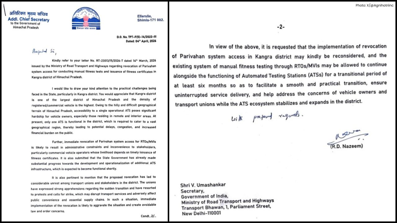 सरकार ने 04 अप्रैल 2026 की तारीख को केंद्र सरकार को पत्र लिखकर पुराने मैनुअल नियमों को जारी रखने की अनुमति मांगी है। यह कदम यह सुनिश्चित करने के लिए उठाया गया है कि जिले में पर्याप्त संख्या में ATS स्टेशनों की स्थापना तक पुराने नियमों के तहत सभी वाहन नियमित रूप से जांच के लिए उपलब्ध रहें। इससे वाहन मालिकों, ट्रांसपोर्ट कंपनियों और आम जनता को सुविधा प्राप्त होगी और किसी भी तरह की असुविधा नहीं होगी।