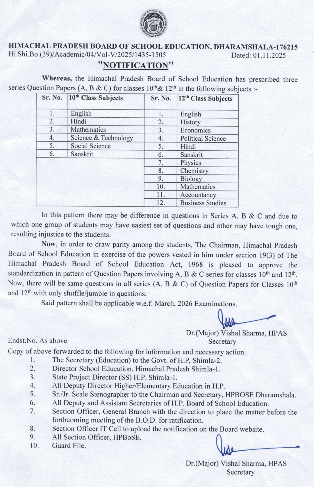 हिमाचल प्रदेश विद्यालय शिक्षा बोर्ड द्वारा लिए गए इस निर्णय के प्रभाव और लाभ प्रदेश के समस्त शिक्षार्थियों, शिक्षकों तथा अभिभावकों तक स्पष्ट रूप से पहुंचेंगे। कक्षा दसवीं और बारहवीं के विद्यार्थियों के लिए यह नया पैटर्न इतना ऐतिहासिक है कि भविष्य की शिक्षा व्यवस्था की दिशा भी इससे तय होगी। प्रदेशभर के स्कूलों में शिक्षक अब विद्यार्थियों को समान रूप से तैयार कर पाएंगे। प्रश्नपत्र की तीनों सीरीज़ में सवालों के क्रम की अदल-बदल के बावजूद सभी का स्तर, विषयवस्तु और पाठ्यक्रम समान रहेगा। इससे विद्यार्थियों का तनाव और भ्रम कम होगा, तथा समाज में निष्पक्षता और पारदर्शिता की भावना दृढ़ होगी।